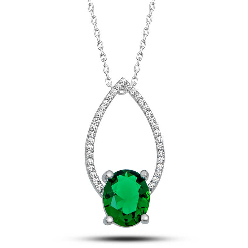 Gümüş Yeşil Oval Taşlı Damla Kadın Kolye