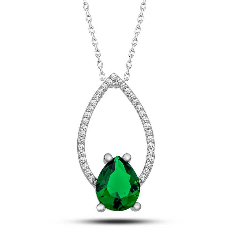 Gümüş Yeşil Taşlı Damla Kadın Kolye