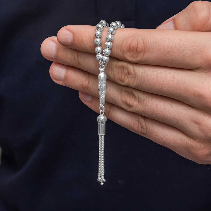 Bu şık ve zarif tesbih,yüksek kaliteli 925 ayar gümüşten üretilmiştir.Yuvarlak formdaki küçük boy gümüş taneleriyle hem günlük kullanım hem de özel günlerde tercih edilebilecek zarif bir aksesuardır.Modern tasarımı ve sade çizgileriyle dikkat çeken bu erkek tesbihi,elde rahatça tutulabilecek boyutta tasarlanmıştır.Gümüş tesbihi severek kullanabilir;doğum günü,sevgililer günü veya babalar gününde ya da özel günlerde hediye olarak tercih edebilirsiniz.Ürünlerimizin tamamı el emeği ile üretilmiştir.Gümüş ve değerli taşlar nedeniyle belirtilen ortalama ürün ağırlığında ± %10 sapma olabilmektedir.