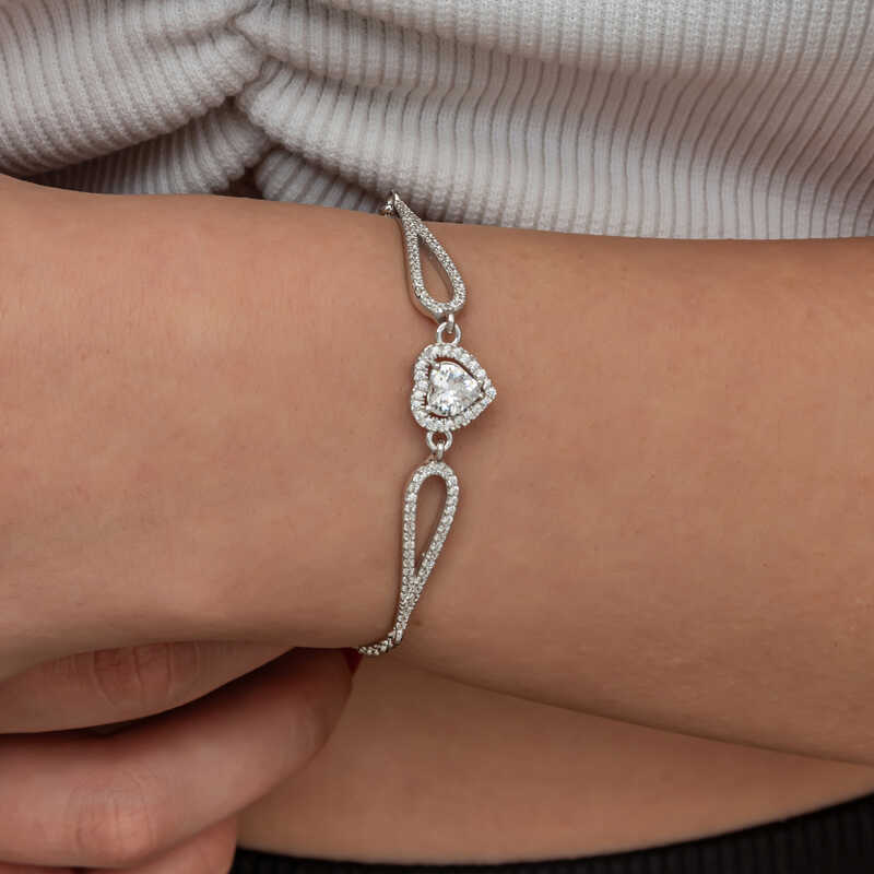Gümüş Zirkon Taşlı Kalp Bileklik