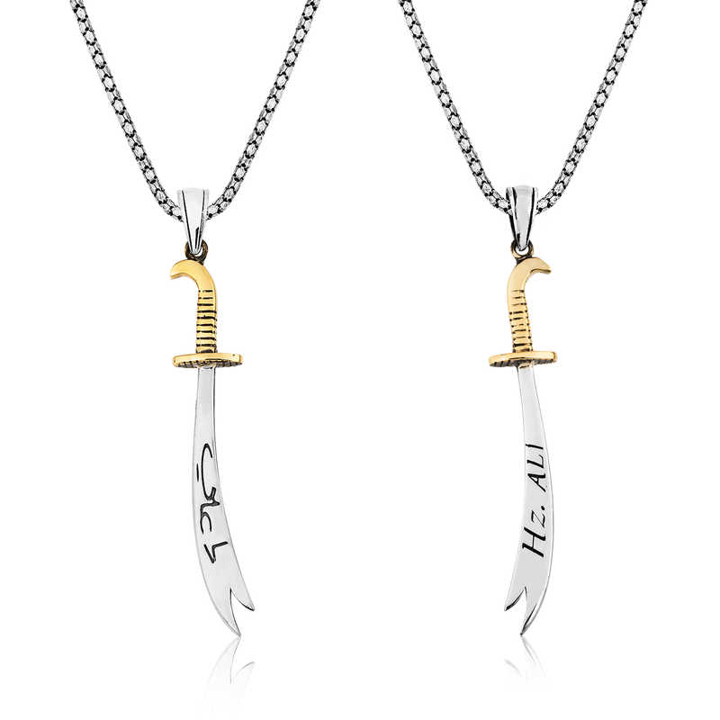 Gümüş Zülfikar Kılıcı Hz. Ali Yazılı Erkek Kolye