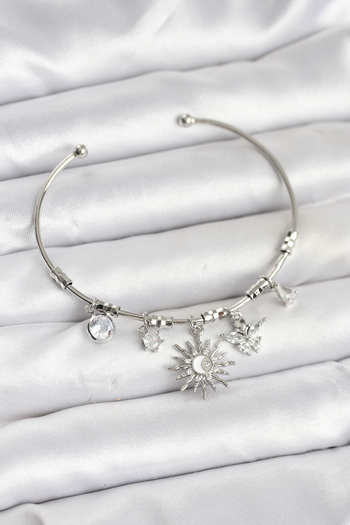 Güneş Charmlı Gümüş Renk Pirinç Kadın Bileklik - TJ-BB8042