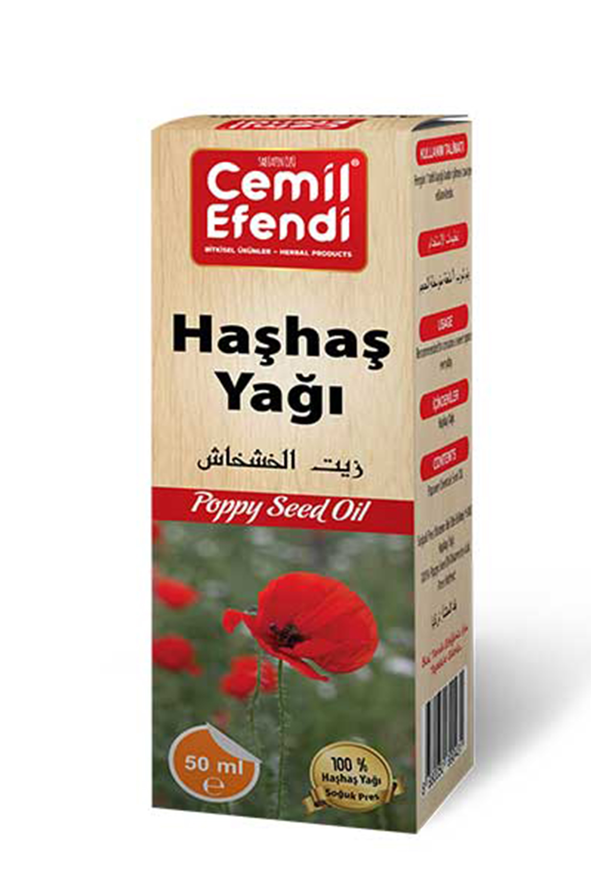 | Haşhaş Yağı 50 Ml. İçindekiler Soğuk pres yöntemiyle elde edilmiştir. %100 Haşhaş (sabit) yağıdır. Kullanım Talimatı Her gün 1 tatlı kaşığı içilmesi tavsiye edilir. Uyarılar Serin yerde, ağzı kapalı olarak muhafaza ediniz. Göz ile temasından kaçınınız. Işıktan koruyunuz. |
