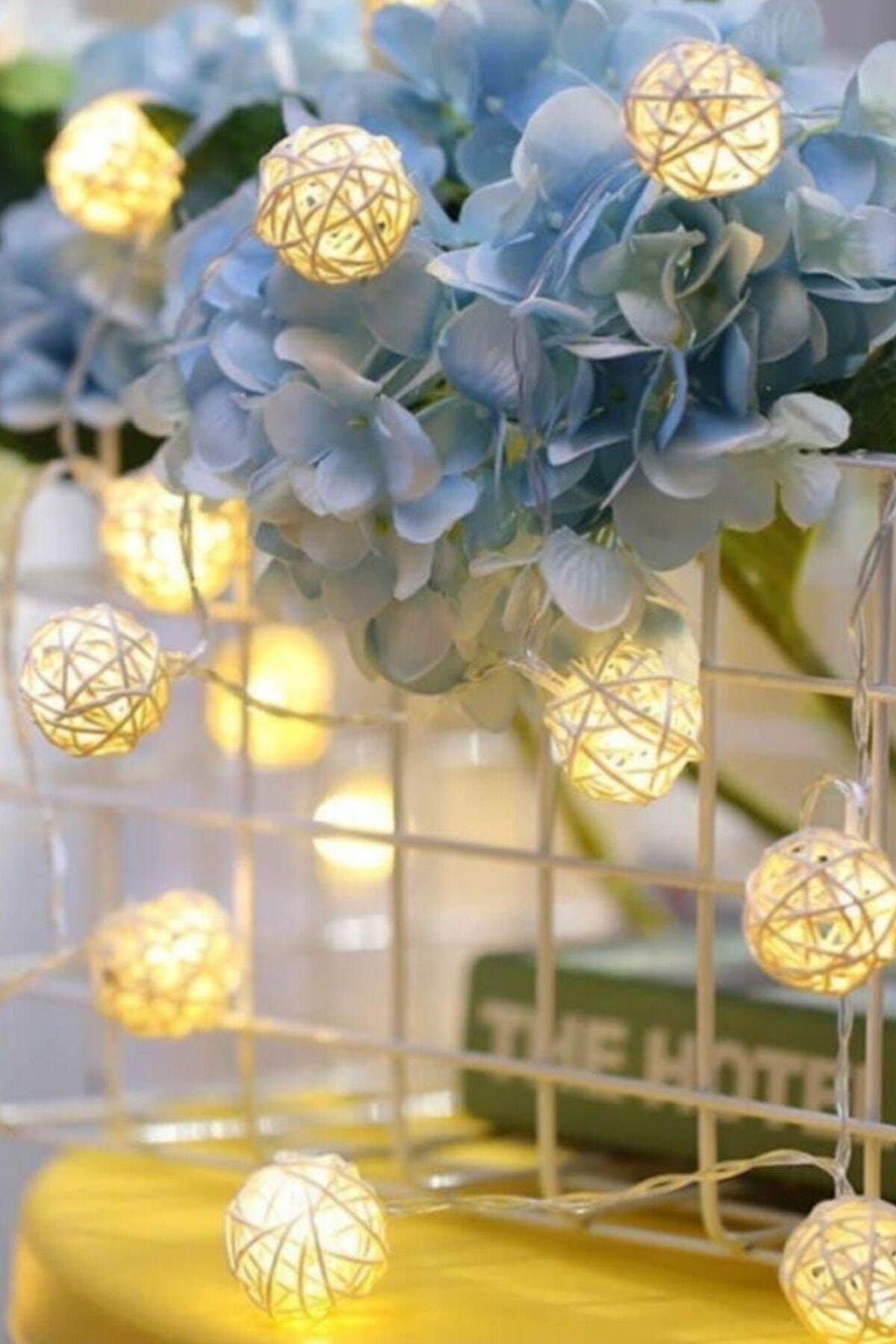 1 Adet Hasır Toplar Led Işık 2 metre GÜN IŞIĞI Dekor Lambası