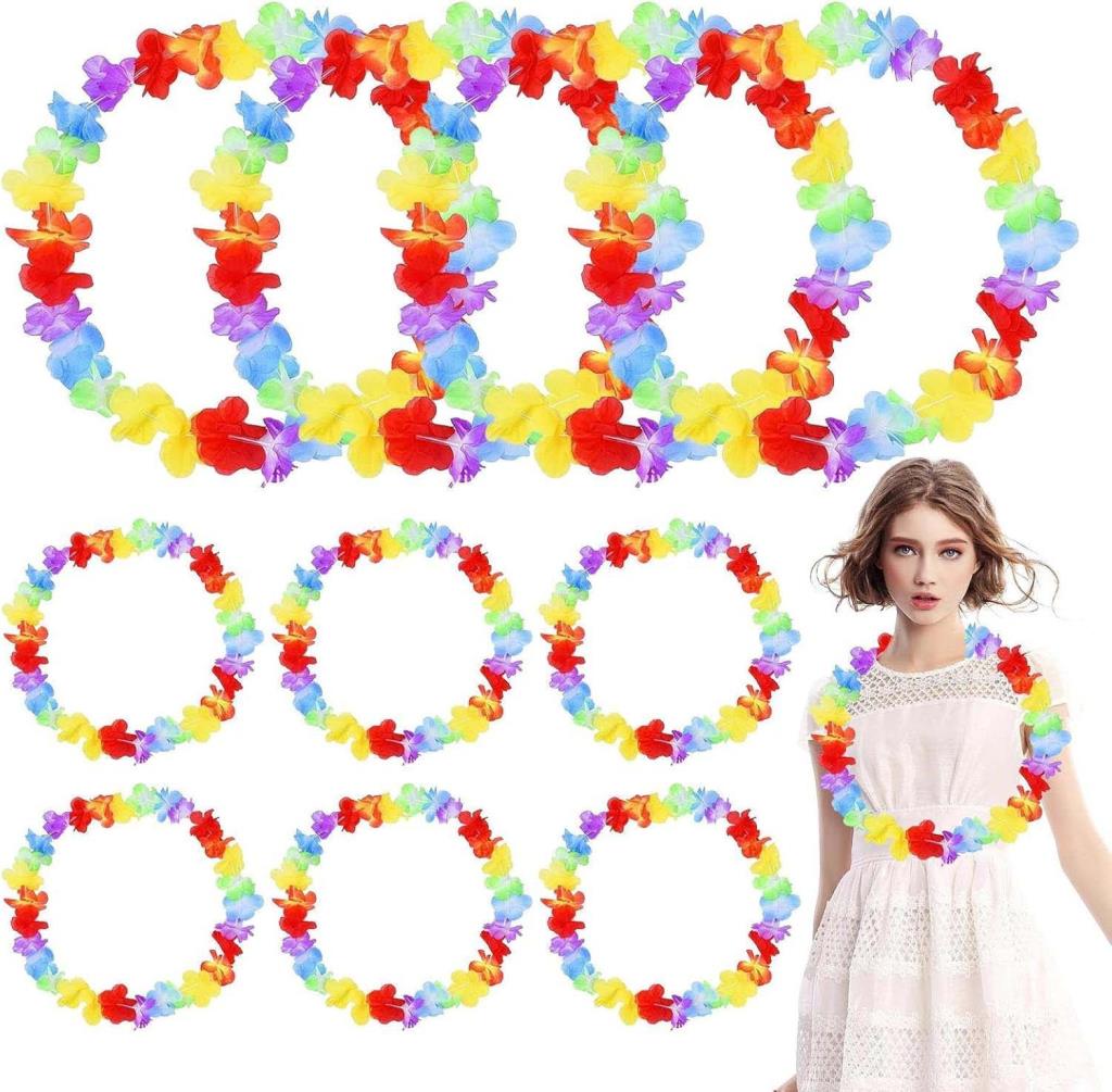 Hawaii Çiçekli Boyun Kolyesi - Renkli Tropikal Parti Leisi (12 Adet)