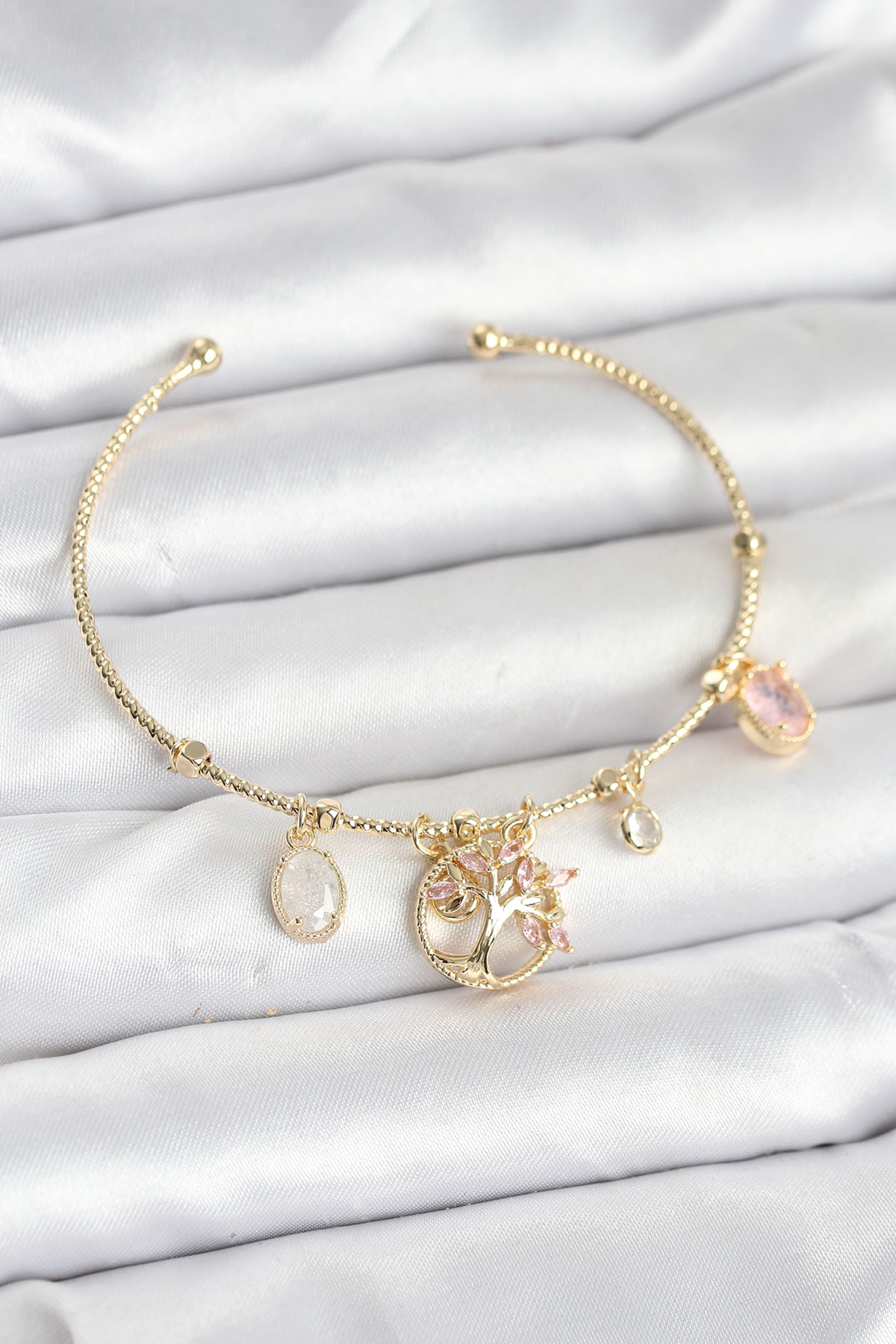 Hayat Ağacı Charmlı Gold Renk Pirinç Kadın Bileklik - TJ-BB8037