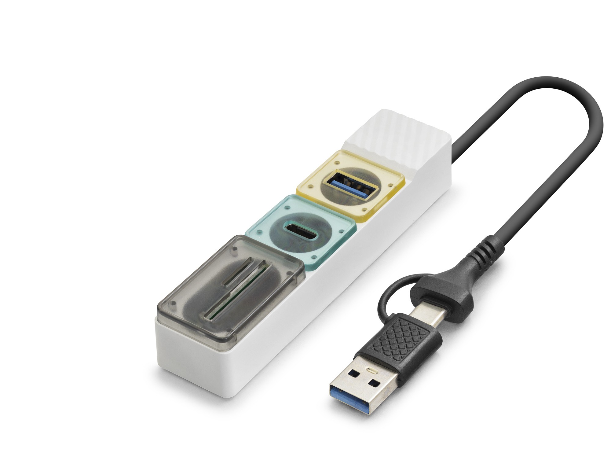 HDX7058, Hem Type-c Hem De Usb-a Girişli Cihazlarla Uyumlu Çalışabilen, 2in1 Kablo Yapısına Sahip Kompakt Bir Hub Ve Kart Okuyucudur. Usb 3.2 Gen1 Teknolojisi Sayesinde Tüm Portlarda 5Gbps Yüksek Veri Aktarım Hızı Sunar. Sd Ve Microsd Kartlardan Hızlı Veri Aktarımı İçin İdeal Bir Çözümdür.