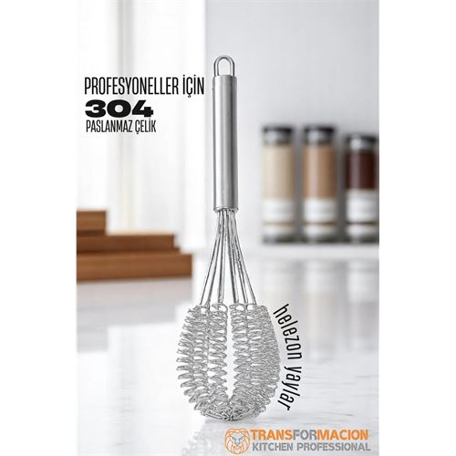 Bu Profesyonel 304 Paslanmaz Çelik Çırpıcı, mutfakta hassas çırpma işlemlerini ve rahat kullanım sağlayan mükemmel bir yardımcıdır!