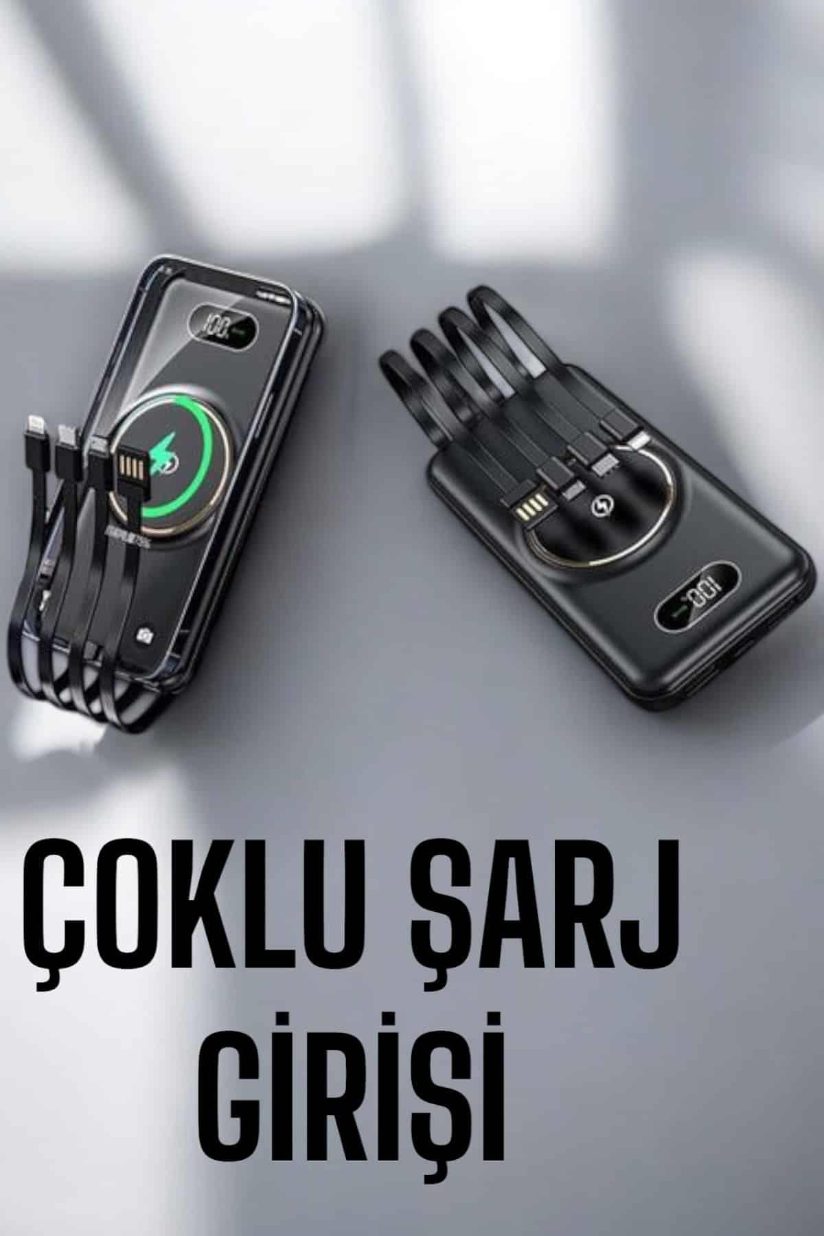 Hızlı Şarj Dijital Göstergeli Powerbankli Çoklu Şarj Özelliği