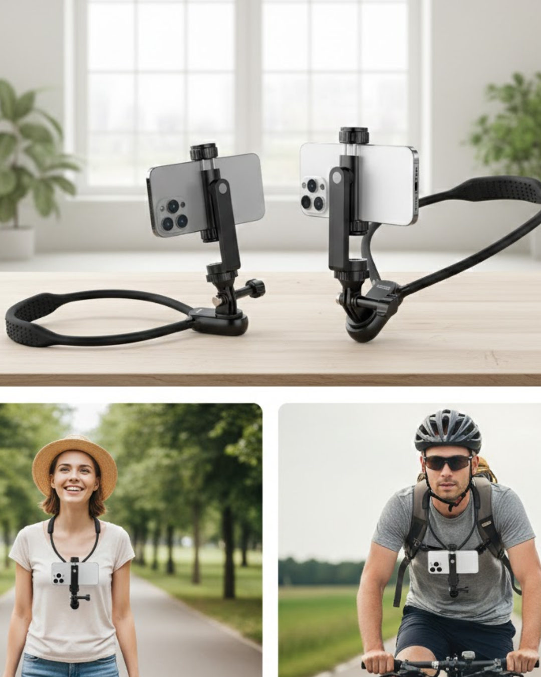 Eller serbest çekim deneyimi sunan bu boyun askılı telefon tutucu, günlük kullanım için tasarlanmıştır. Kolay bükülebilir silikon yapısı ile konforlu oturum sağlar. Sağlam telefon kelepçesi, cihazınızı güvenli şekilde sabitler. Hızlı kurulum anahtarı sayesinde boyun bandının bir tarafı pratik biçimde çıkarılabilir. Koşu, bisiklet, seyahat ve içerik üretimi için ideal çözüm sunar.