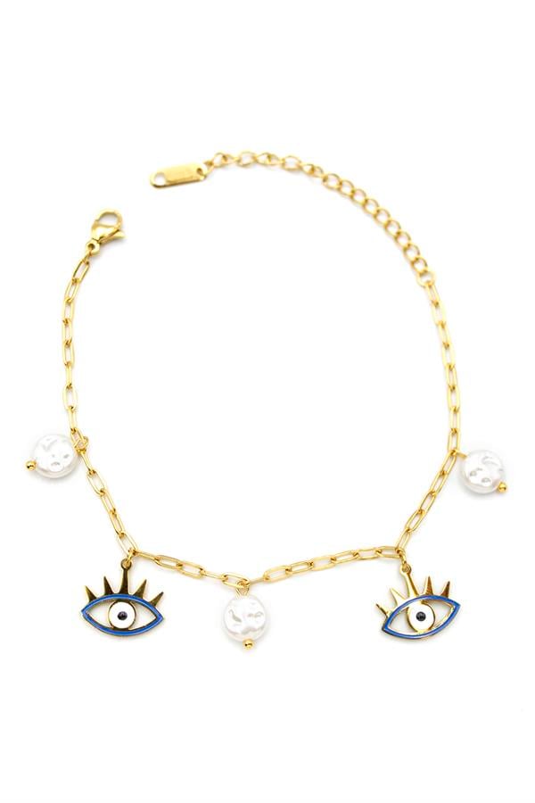 İnci Göz Bileklik - Altın