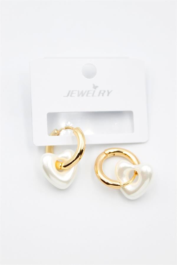İnci Kalp Küpe - Altın