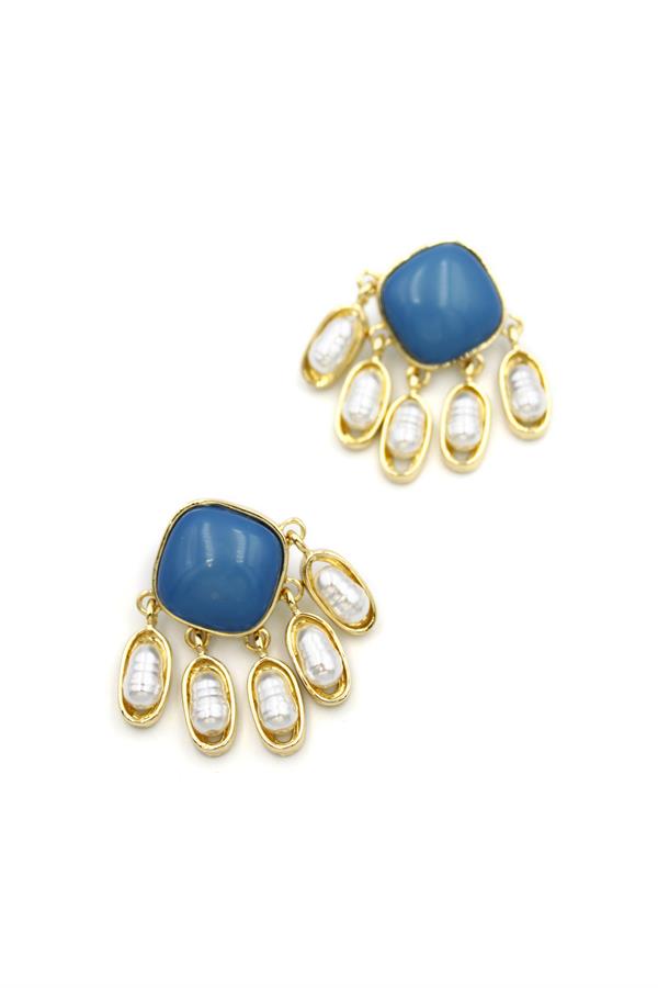 İnci Sallantılı Küpe - Mavi