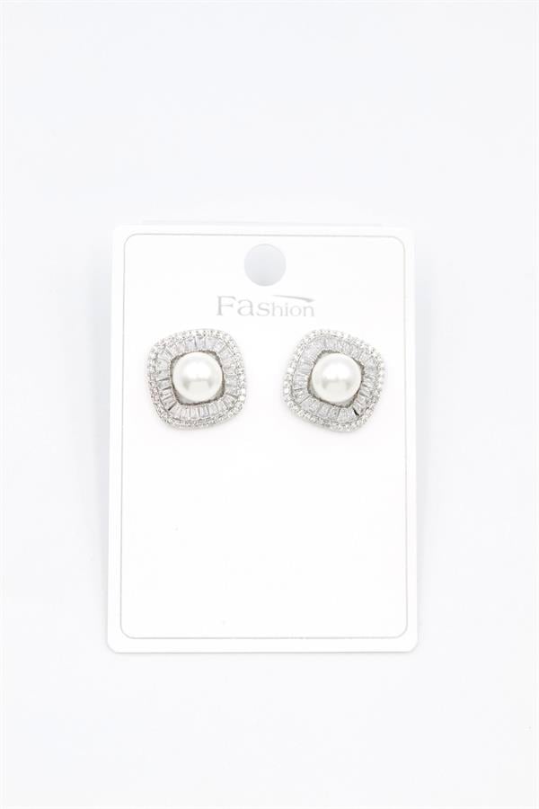 İncili Baget Taşlı Küpe - Gümüş