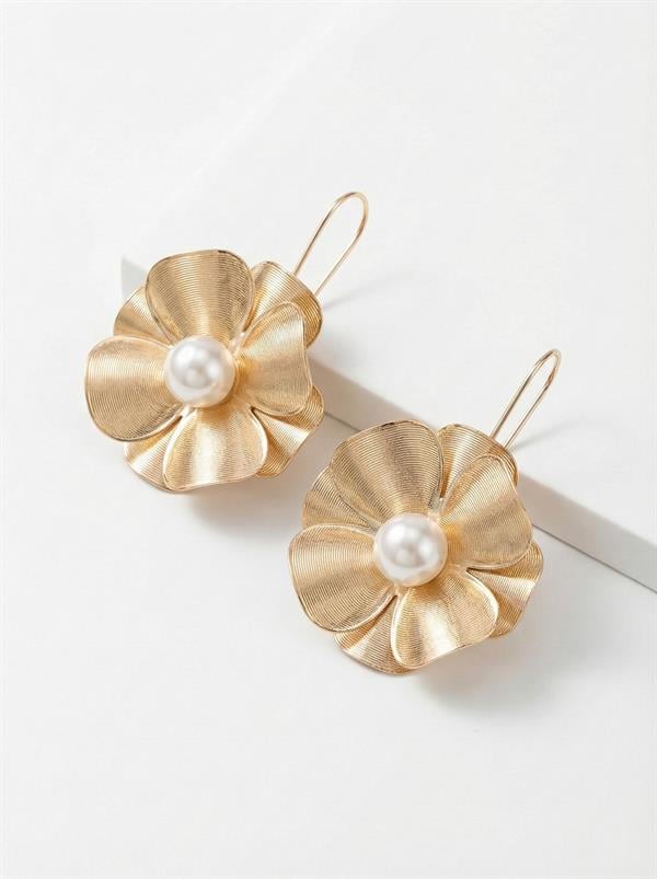 İncili Çiçek Küpe - Altın