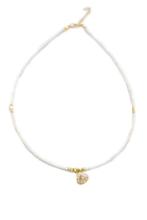 İncili Deniz Kabuğu Kolye - Beyaz