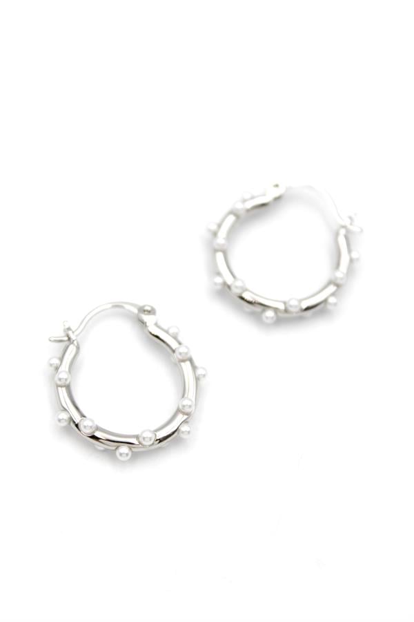 İncili Halka Küpe - Gümüş