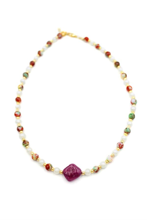 İncili Taşlı Kolye - Mor