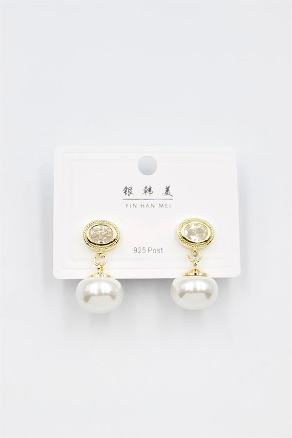 İncili Taşlı Küpe - Altın