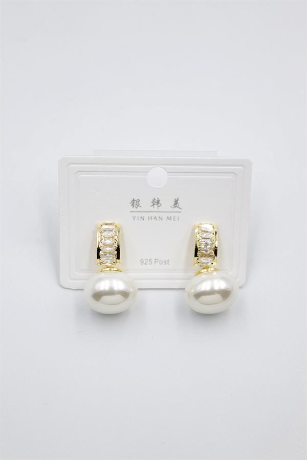 İncili Taşlı Küpe - Altın