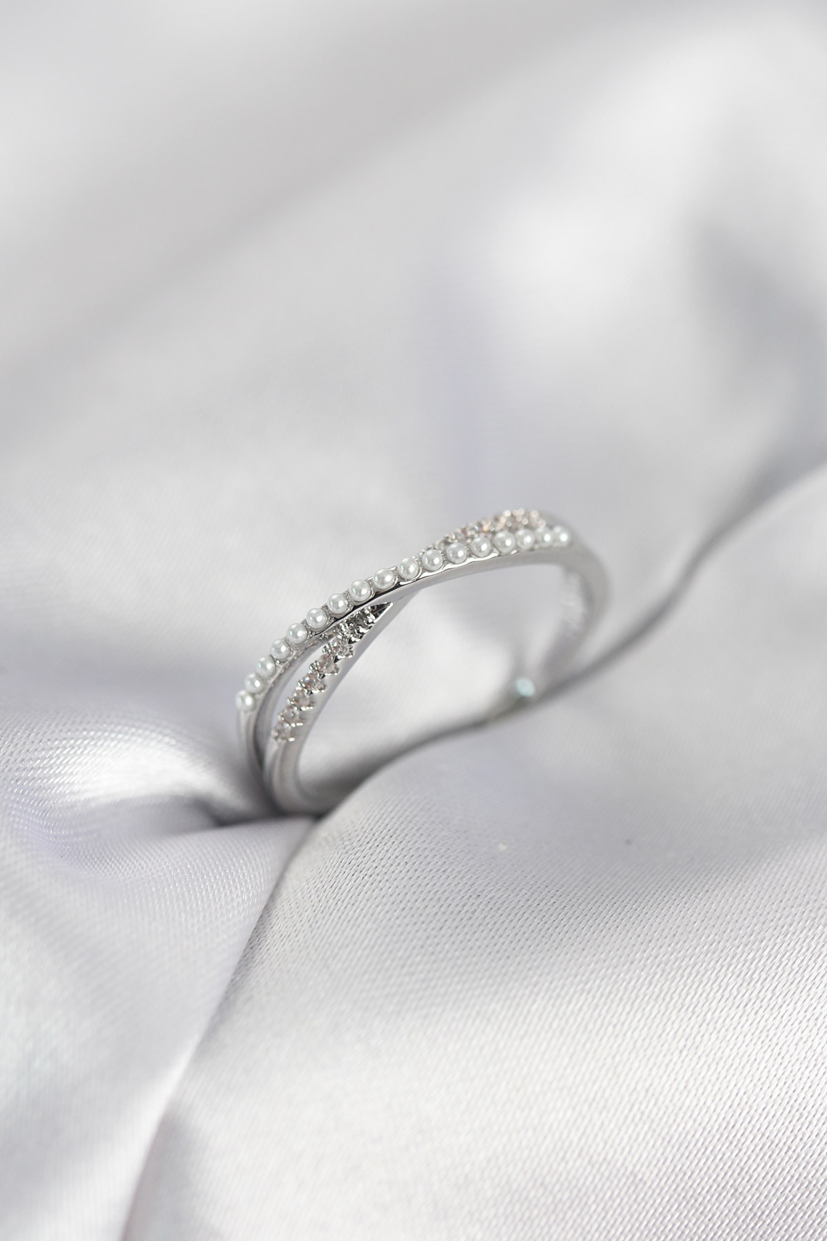 İncili ve Zirkon Taşlı Gümüş Renk Kadın Yüzük - TJ-BYK4106