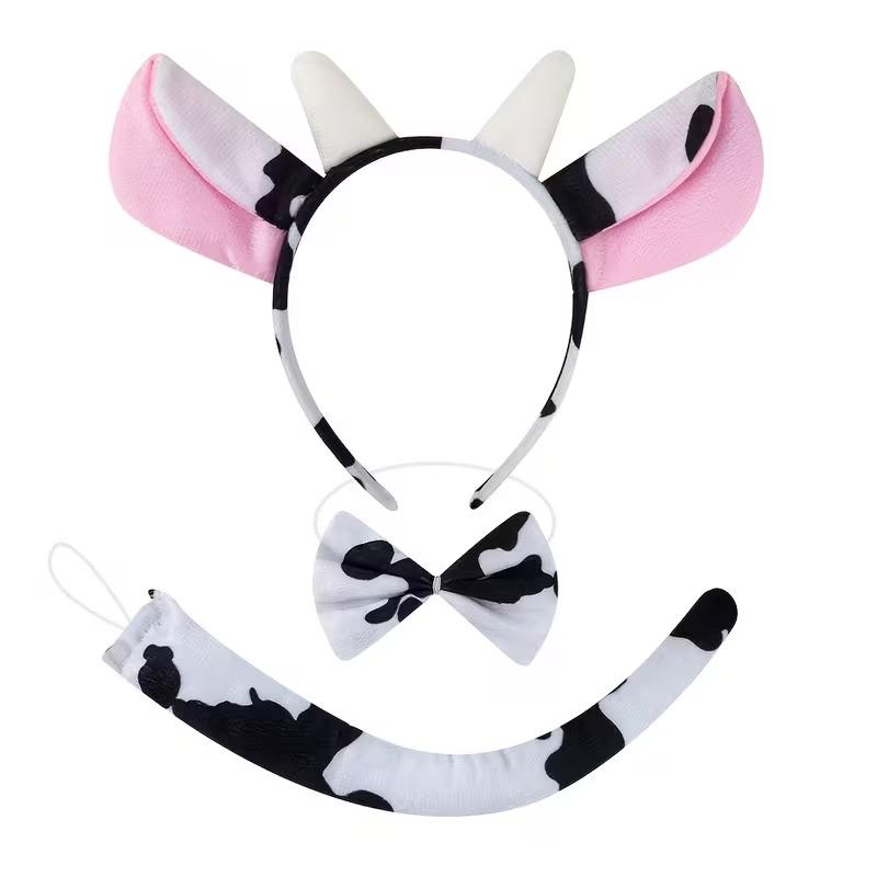 İnek Kostüm Aksesuar Seti 3 lü - Taç Papyon Kuyruk