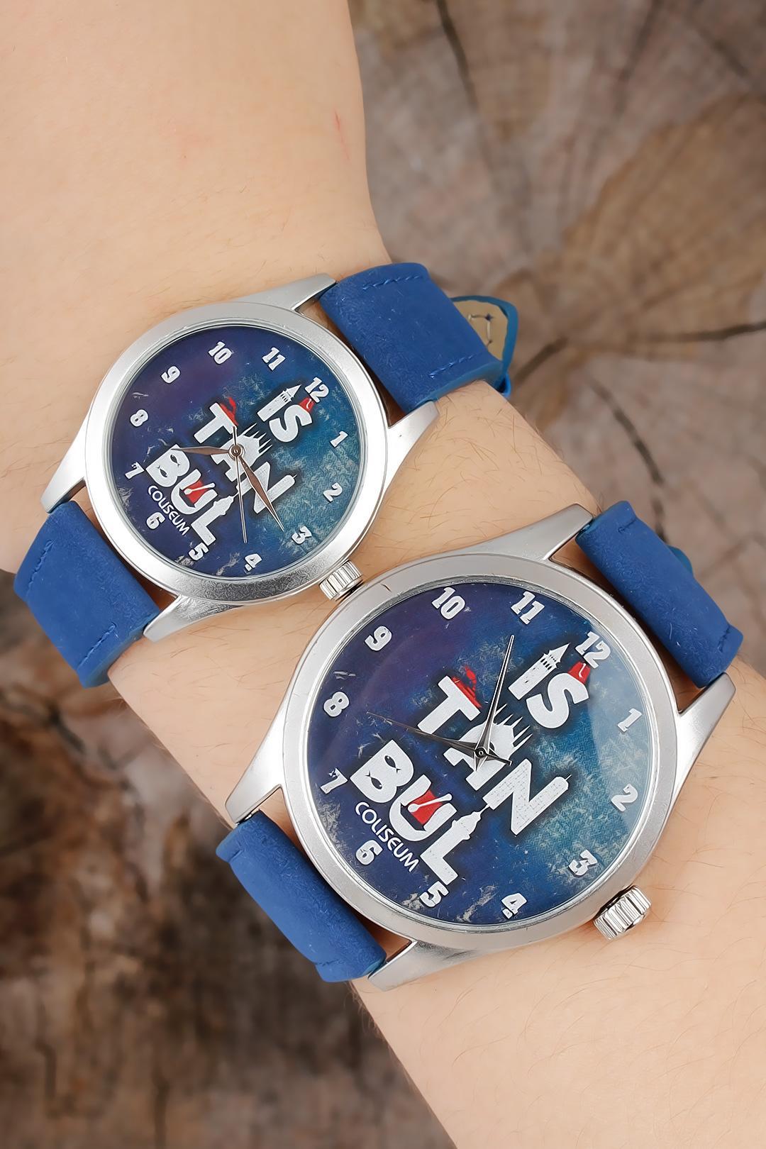 İstanbul Tasarım Lacivert Deri Kordonlu Sevgili Saatleri - TJ-SGK1368