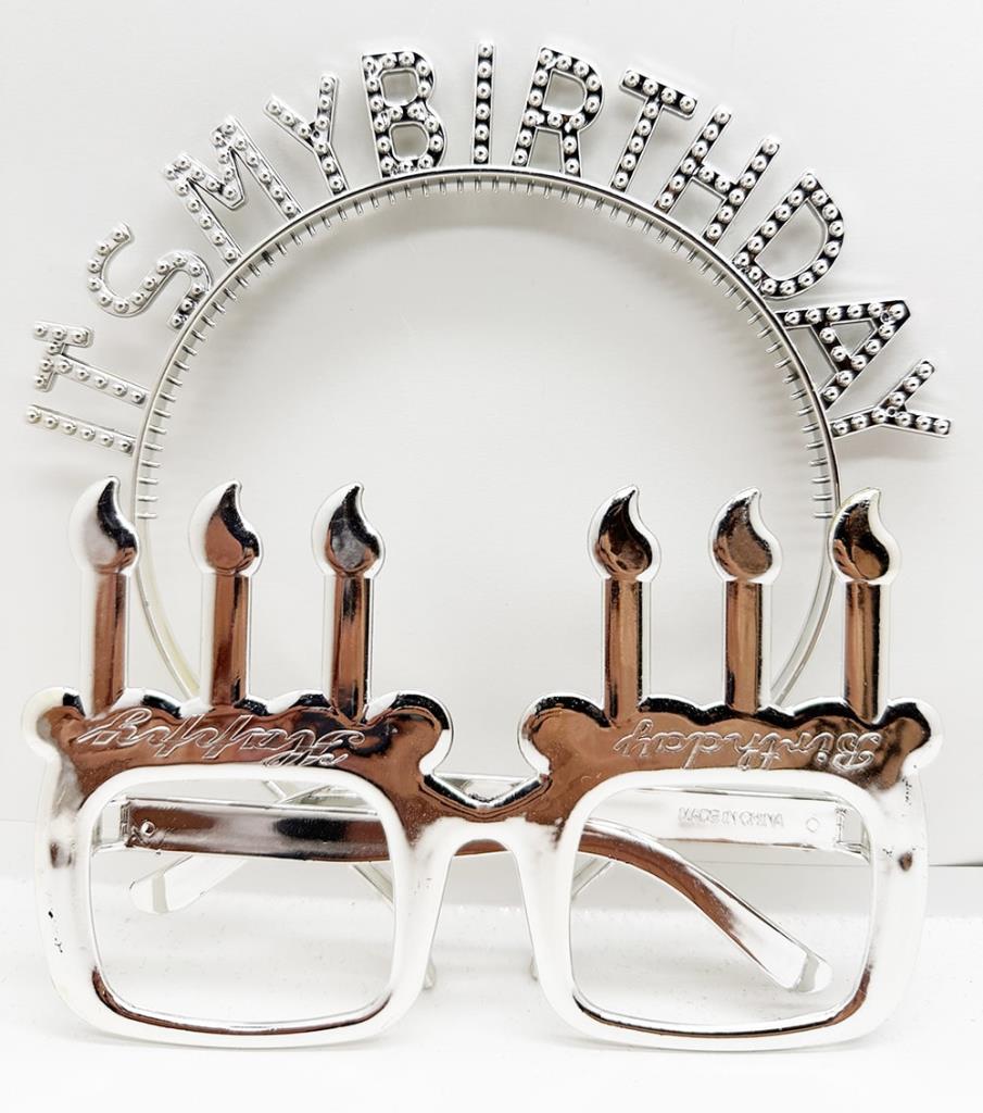 İt's My Birthday Yazılı Taç ve Mum Şekilli Gözlük Seti Gümüş Renk, doğum günü partileri ve diğer özel günler için mükemmel bir aksesuardır. Taç ve gözlük plastikten yapılmış ve gümüş rengindedir. Taçta "It's My Birthday" yazmaktadır ve gözlükler mum şeklindedir.