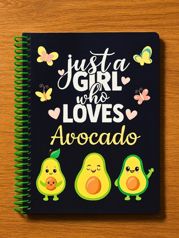 Eğlenceli ve renkli tasarımıyla dikkat çeken “Just A Girl Who Loves Avocado” temalı spiralli defter, hem okul hem de günlük kullanım için mükemmel bir tercih!