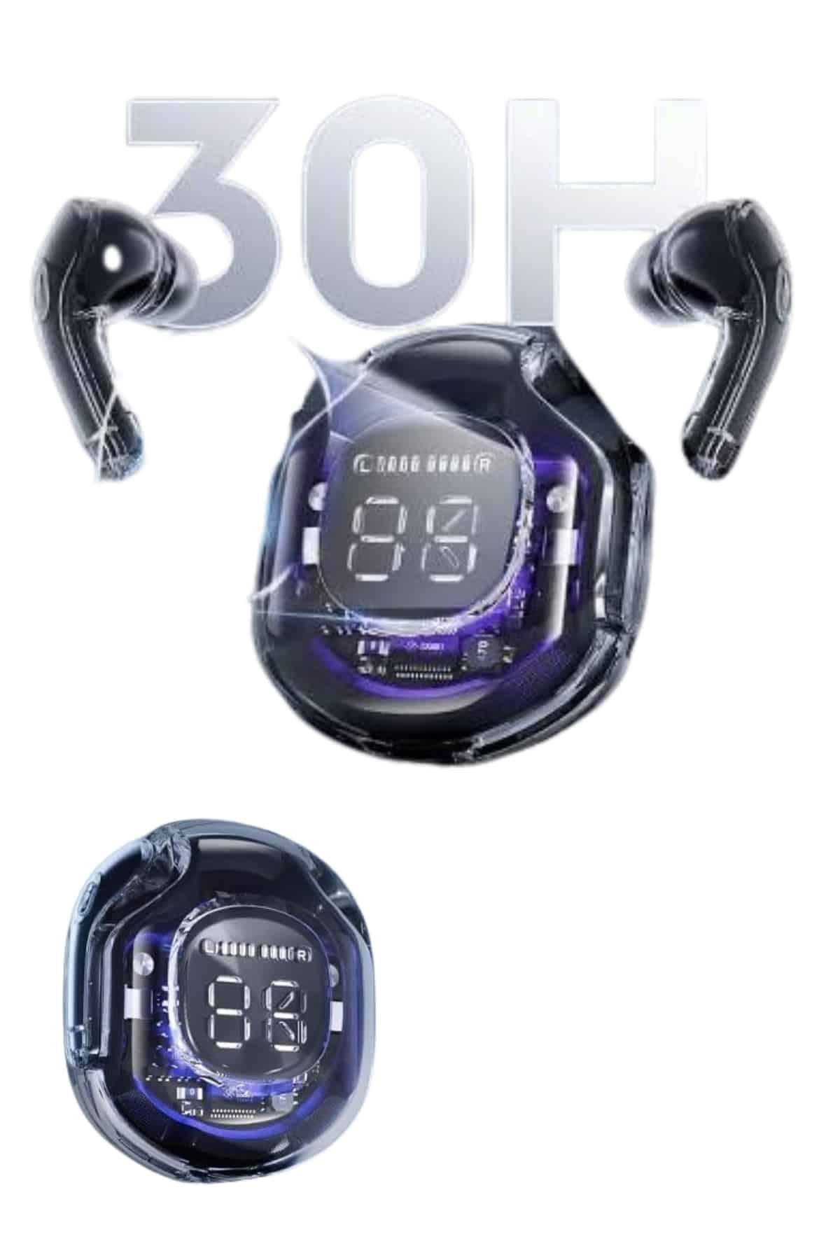 Kompakt şarj kutusu üzerinde yer alan dijital LED ekran, şarj durumunu anlık olarak göstererek pil seviyesini sürekli takip edebilmenizi sağlar. Bu sayede sürpriz pil bitme durumlarını ortadan kaldırır. Kulaklıkla birlikte gelen yedek silikon başlıklar ise farklı kulak yapılarına uygun şekilde tasarlanmış olup, ergonomik uyum ve uzun süreli konfor sunar.