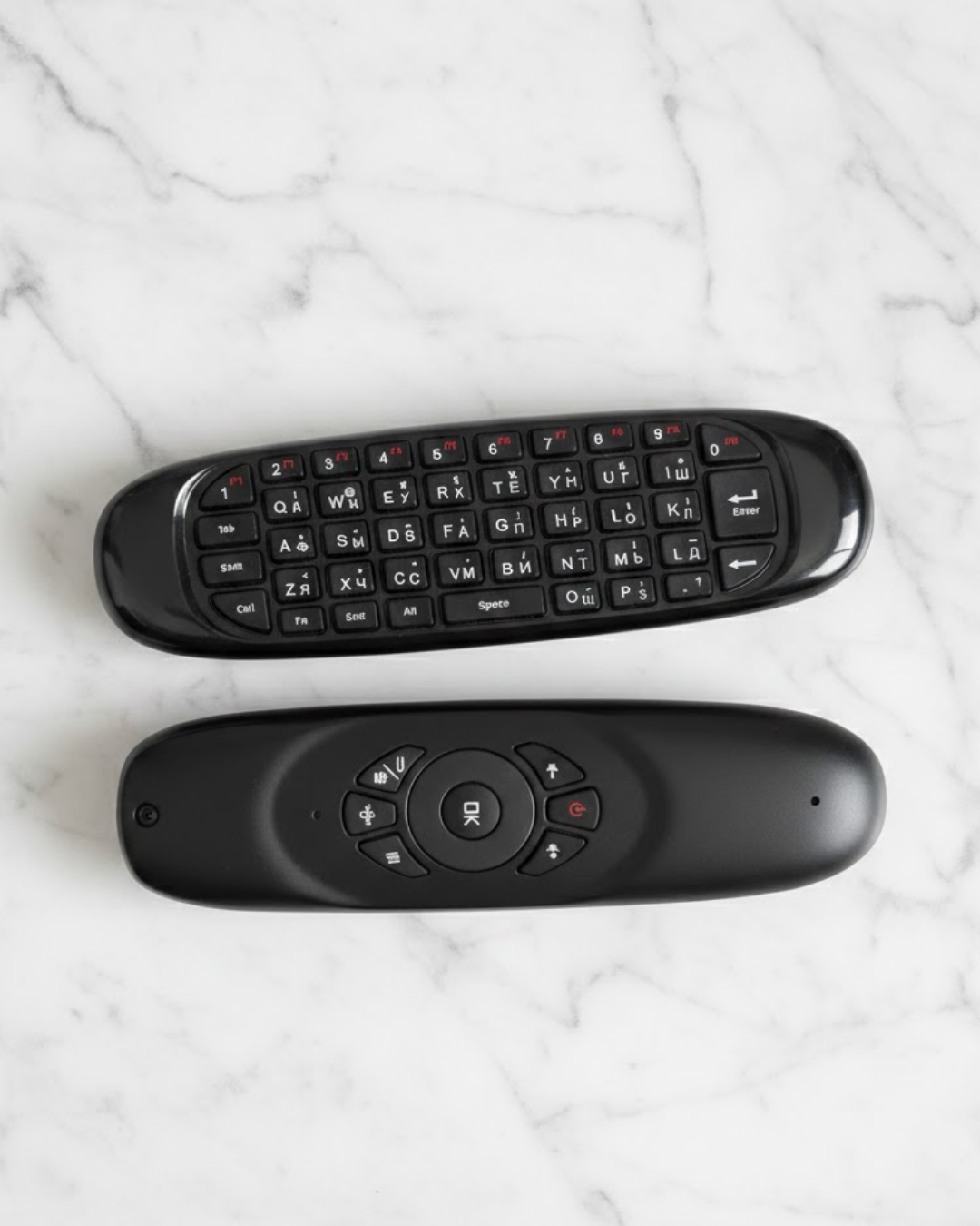 Kablosuz hava fareli mini klavye, hava mouse, kablosuz klavye ve uzaktan kumanda özelliklerini tek cihazda birleştirir. Çift taraflı tasarımı sayesinde bir yüzünde klavye, diğer yüzünde ise hava fare kontrolü bulunur. 6 eksenli jiroskop teknolojisi, el hareketleriyle hassas ve akıcı kontrol sağlar. Android TV kutuları, akıllı televizyonlar, bilgisayarlar ve projektörlerle uyumludur. Tak-çalıştır özelliği sayesinde ekstra kurulum gerektirmez. Yaşam alanınızda kablo karmaşasını ortadan kaldırarak pratik ve konforlu bir kullanım sunar.