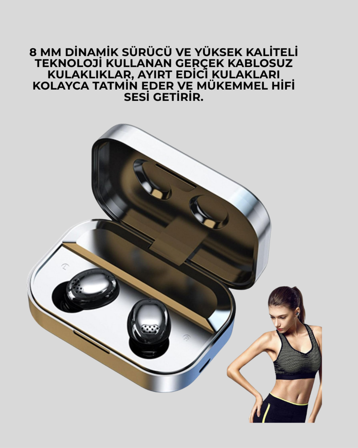 Bu kulak içi kablosuz kulaklık, modern yaşam tarzına ayak uydurmanız için tasarlandı. Gerçek kablosuz bağlantı özelliği sayesinde sizi kısıtlayan hiçbir kabloya ihtiyaç duymazsınız. Bluetooth çipi ile güçlendirilmiş bağlantı teknolojisi, sıfıra yakın sinyal gecikmesi sunar. Spor yaparken, yürüyüşte veya çalışırken kablosuz özgürlüğün tadını çıkarabilirsiniz. 8 mm dinamik sürücü teknolojisi sayesinde mükemmel ses kalitesi sunar. Müzik, video ve çağrılar için HiFi netliğinde ses sunan bu kulaklıklar, aynı zamanda gelişmiş gürültü engelleme özelliğine de sahiptir. Aramalarınızda çevre seslerini azaltarak daha net iletişim sağlar. Uzun bekleme süresi ve ergonomik yapısıyla gün boyu kullanıma uygundur.