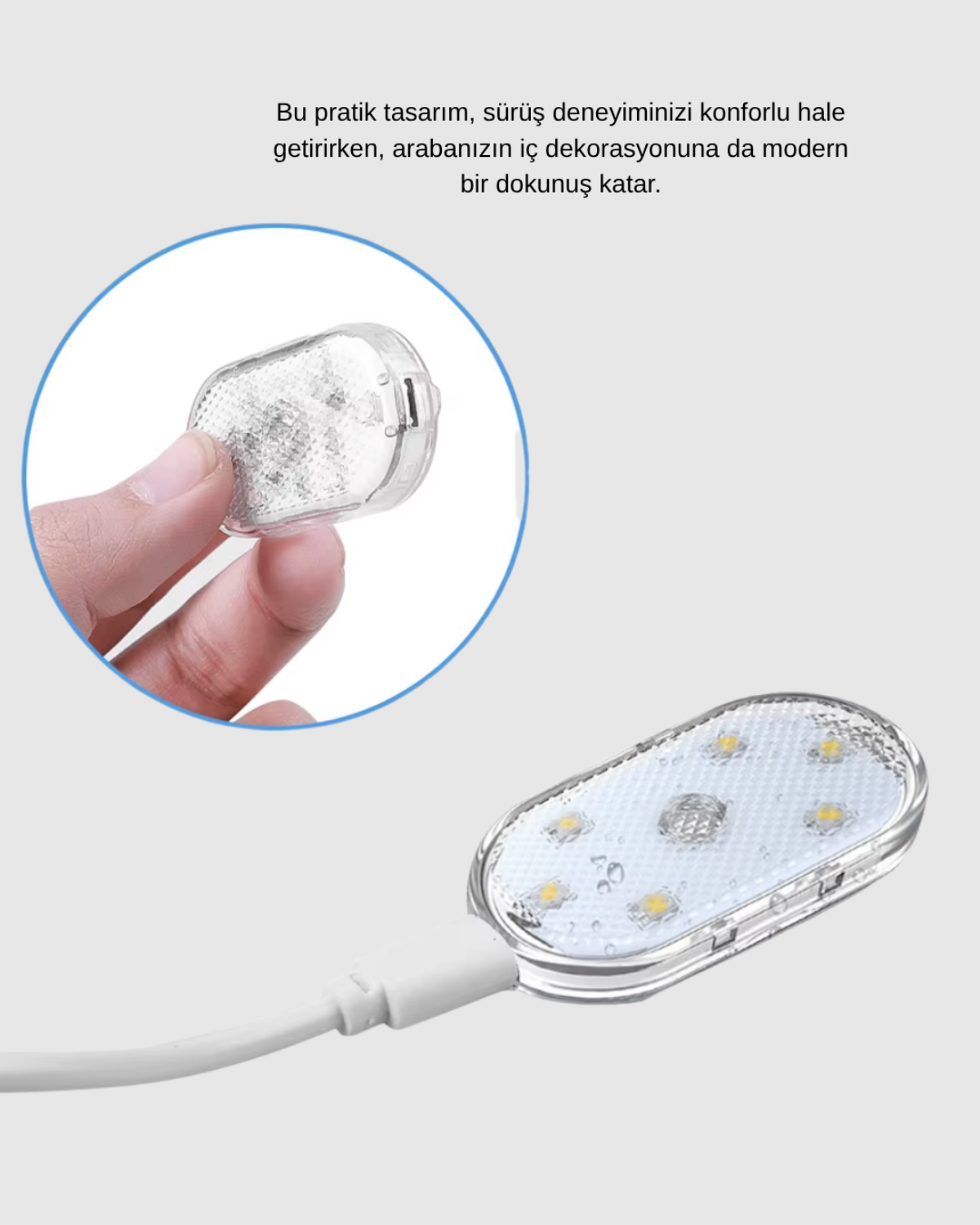 Kablo karmaşasına son veren bu tasarım, aracın içini düzenli tutar. Minimalist görünümü, şık bir ambiyans oluşturur. Düşük enerji tüketimiyle uzun süre kullanılabilir ve aracın elektrik sistemine zarar vermez.