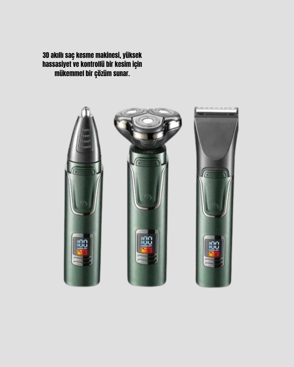 Kablosuz Profesyonel Erkek Bakım Seti – 3 Başlıklı, 3D Akıllı Kesim, Taşınabilir