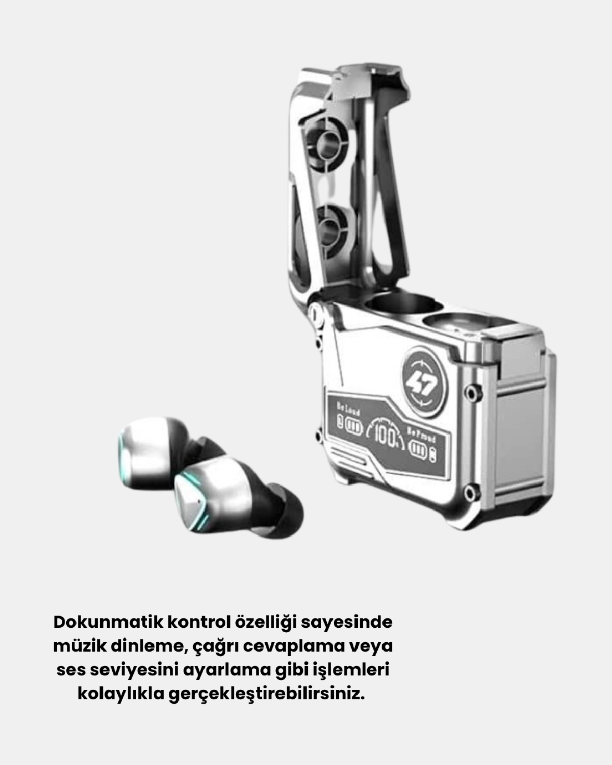 Powerbank özellikli şarj kutusu, kulaklıkları 45 dakikada şarj ederken, kendi bataryasını 1–2 saatte doldurur. Uzun pil ömrü, gün boyu müzik keyfi sunar.