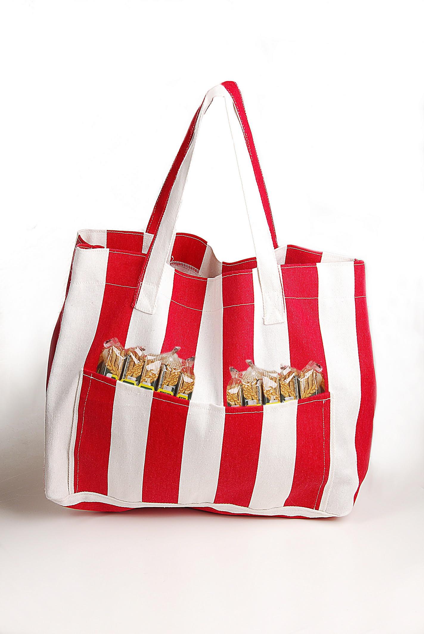 Kadın Kanvas 2 Cepli Günlük Renkli Plaj Omuz Çantası Kırmızı