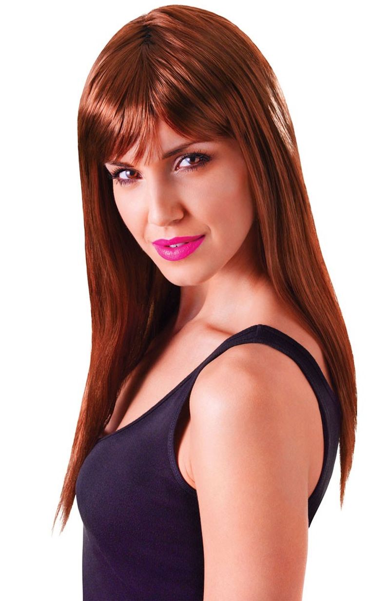Kahve Renk Uzun Düz Parti Peruğu - Uzun Kahverengi Peruk