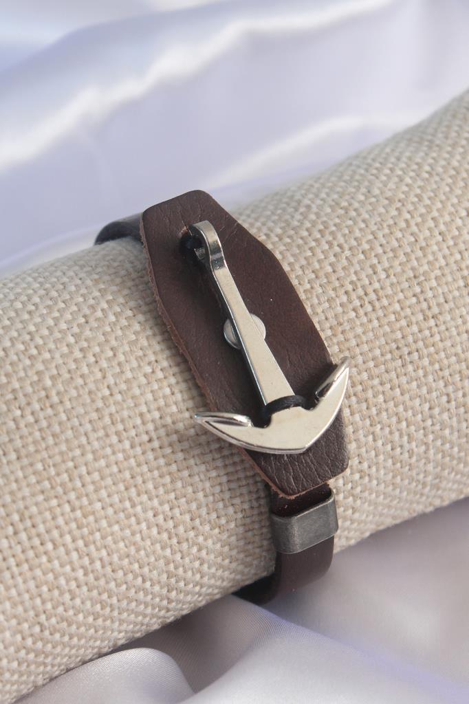 Kahverengi Deri Model Gümüş Renk Çapa Figür Erkek Bileklik - TJ-EB3573