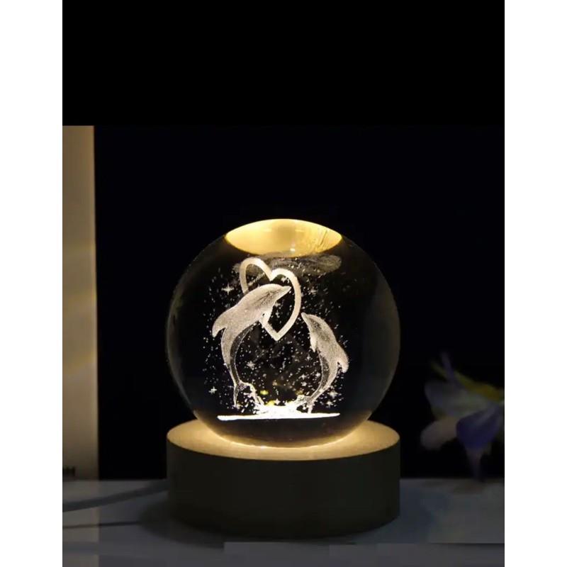 Kalp İçindeki Yunus Balıkları Renk Değiştiren Işıklı Cam Küre 8cm