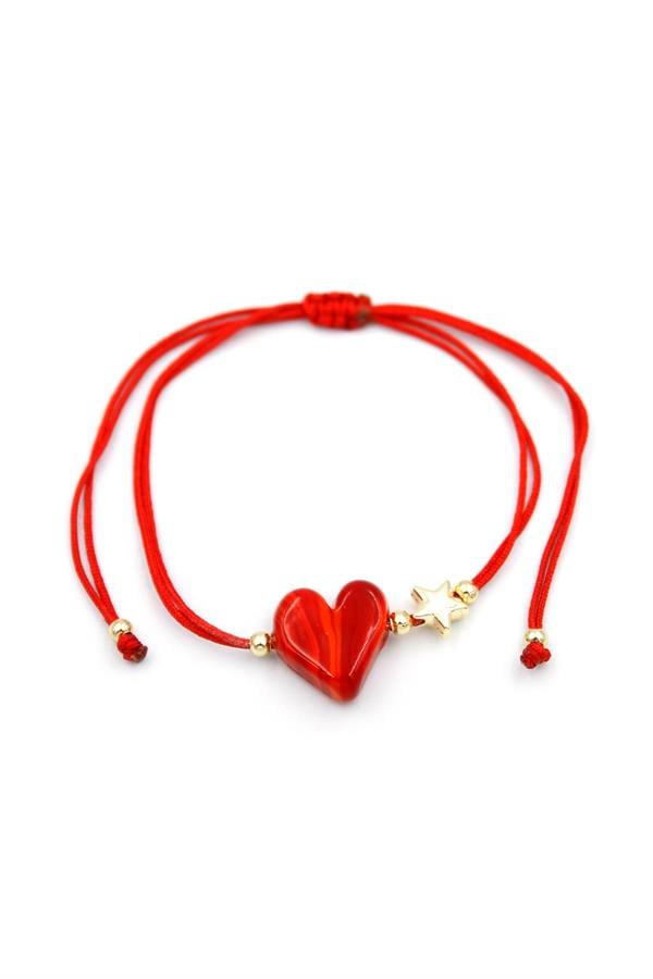 Kalp İp Bileklik - Kırmızı