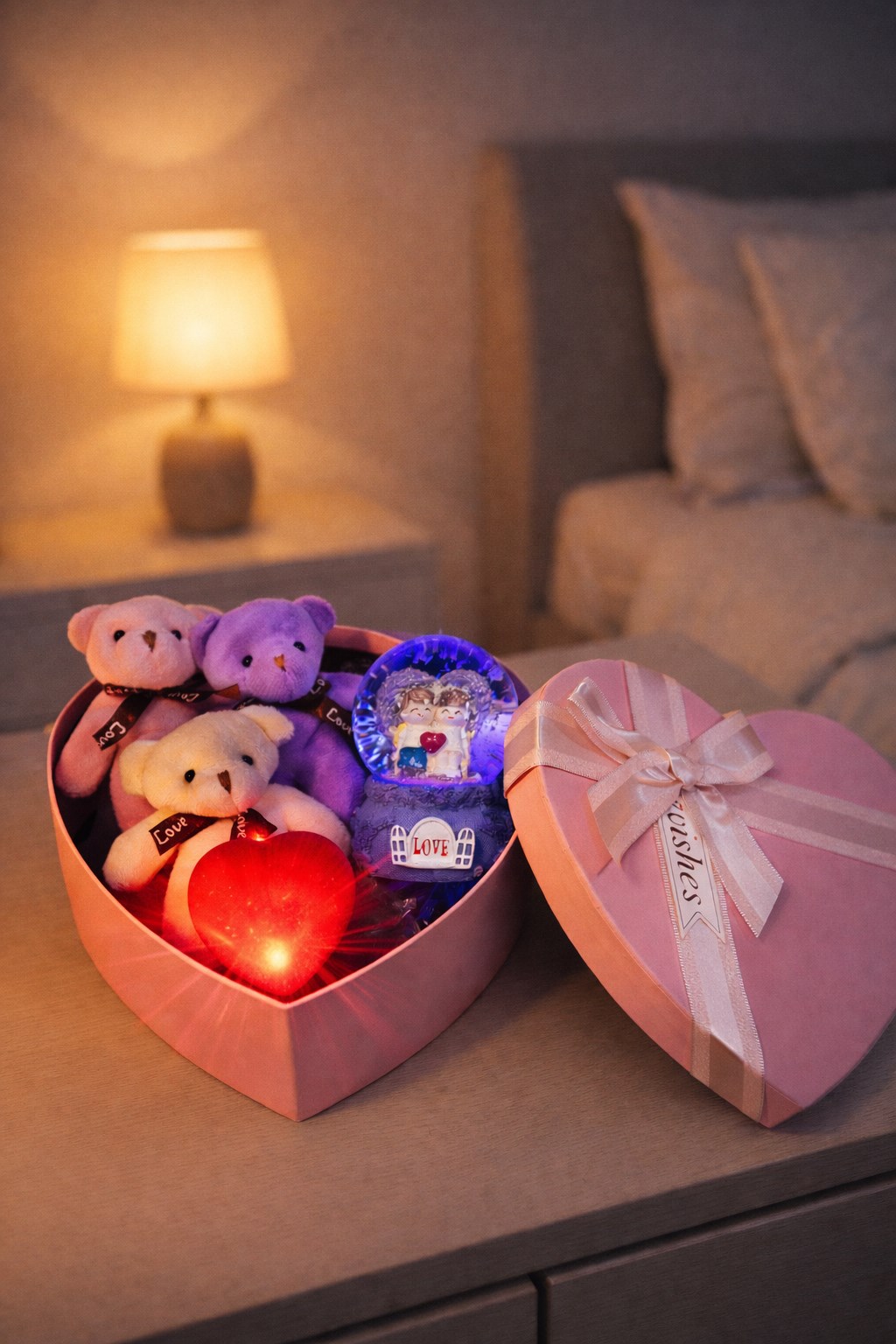 Kalp formundaki şık kutu içerisinde yer alan sevimli ayıcıklar, ışıklı kırmızı kalp ve romantik kar küresi ile unutulmaz bir sürpriz sunar.