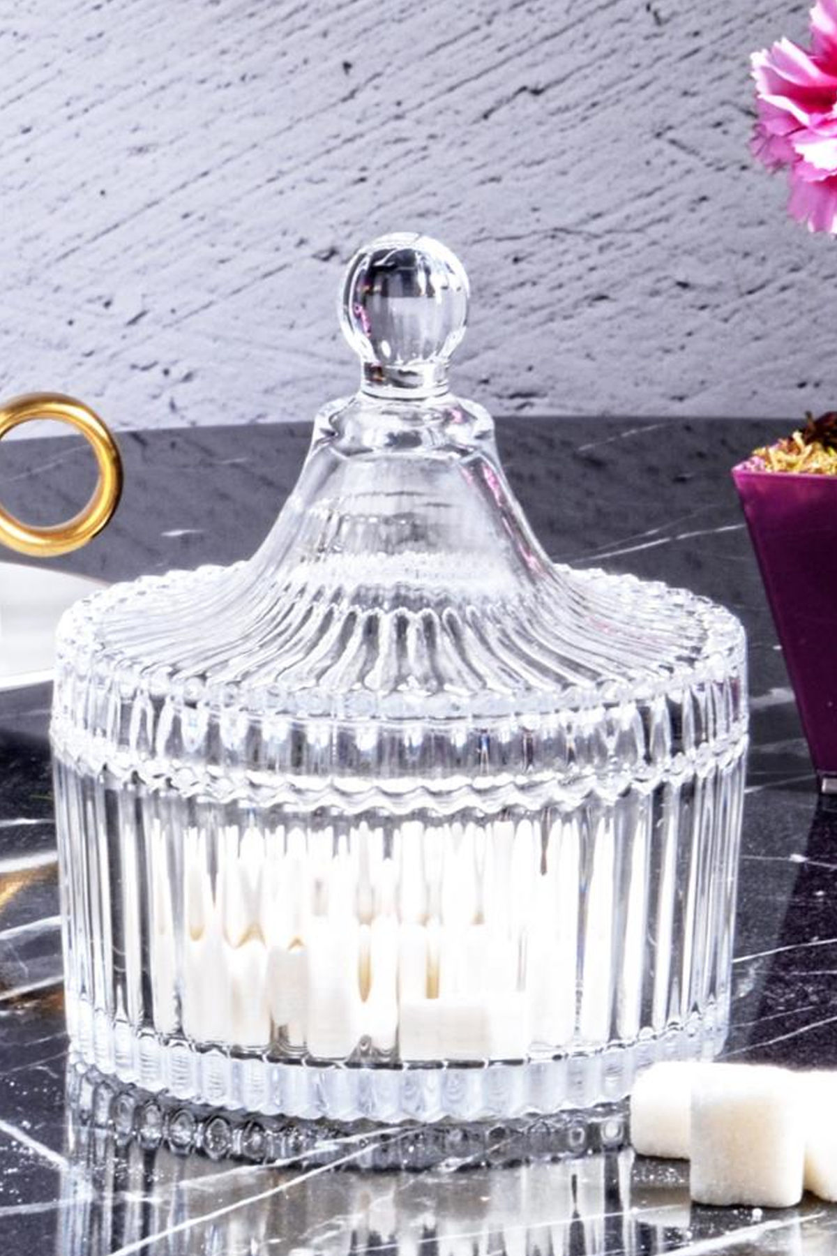 Paket İçeriği : 1 Adet Kapaklı Cam Küçük Şekerlik -Tg033-1J