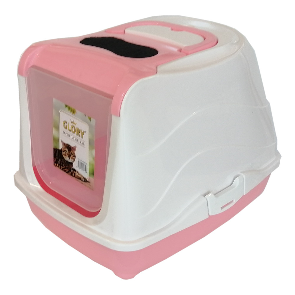 Karbon Filtreli Üstü Açılabilir Kedi Tuvaleti 35*36*49 cm Pembe