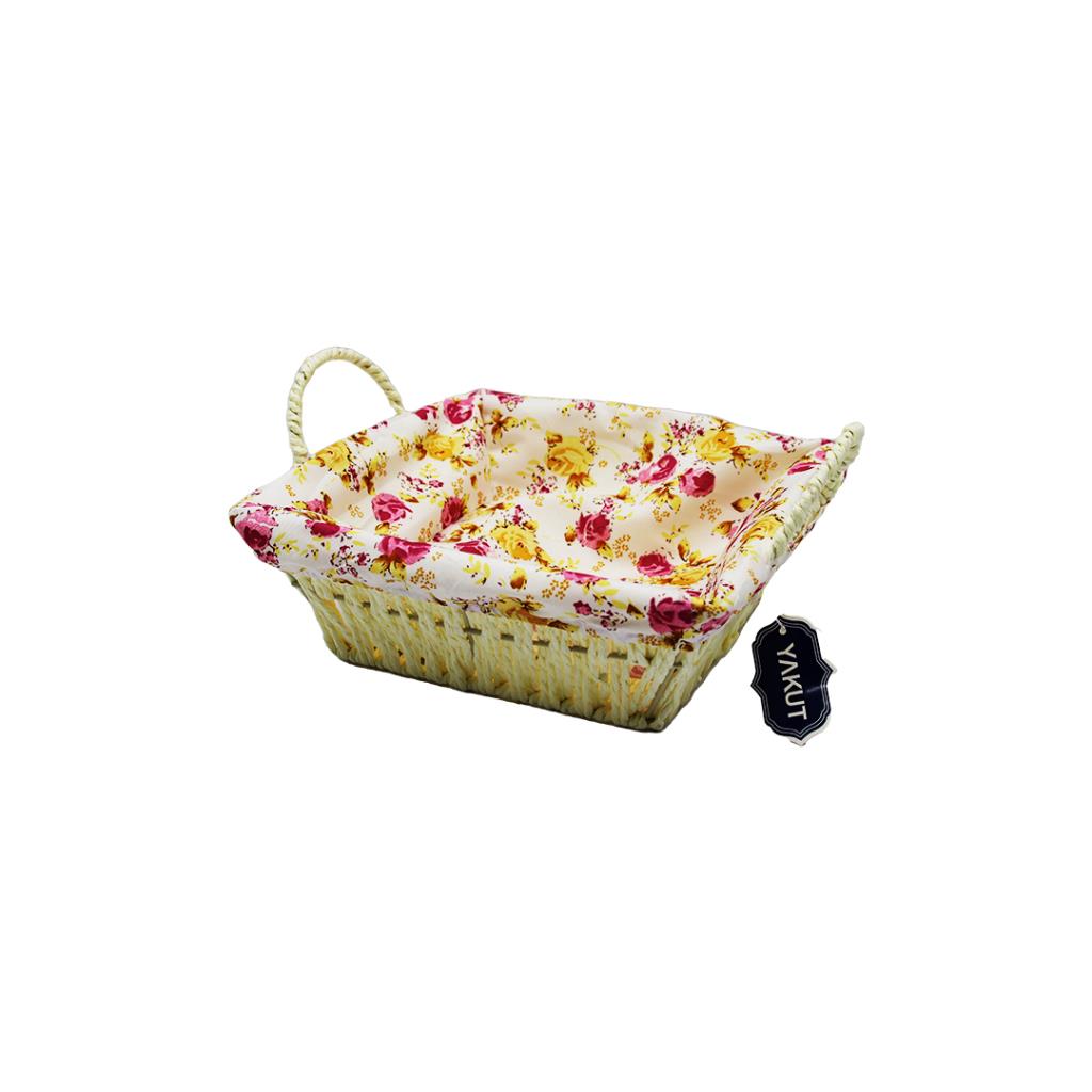 Kare Renkli Bezli Hasır Ekmek Sepeti