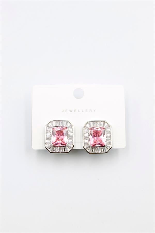 Kare Taşlı Küpe - Pembe