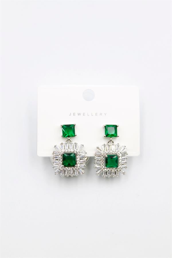 Kare Taşlı Küpe - Yeşil