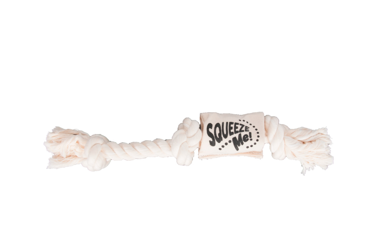 Düğümlü bir ipten ibaret basit bir oyuncak sanmayın! İpin üzerindeki peluş içinde bulunan düdük sayesinde ilgi çekici ve heyecan verici bir oyuncaktır. Pamuktan imal ip sayesinde diş temizleyici görevi görür. Beyaz renkte. 35 cm uzunluk.