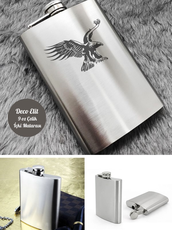 Kartal Temalı 9 Oz Paslanmaz Çelik Cep Matarası 266 Ml içki Viski Konyak Alkol Matarası