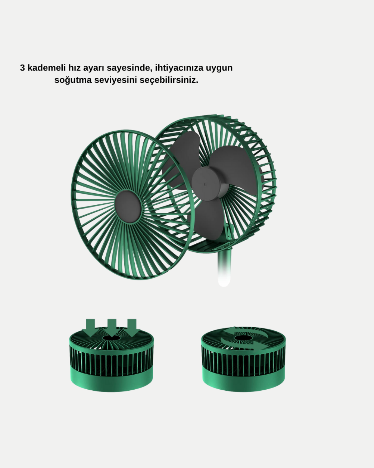 Üç farklı hız kademesi bulunan bu mini fan, kullanıcıya ihtiyacına göre soğutma seçme özgürlüğü sunar. Düşük hız, hafif bir esinti isteyenler için idealdir; orta ve yüksek hız kademeleri ise sıcak havalarda güçlü bir hava akışı sağlar. Bu özelliği sayesinde ister evde, ister ofiste, ister dışarıda her ortamda verimli bir kullanım sunar.