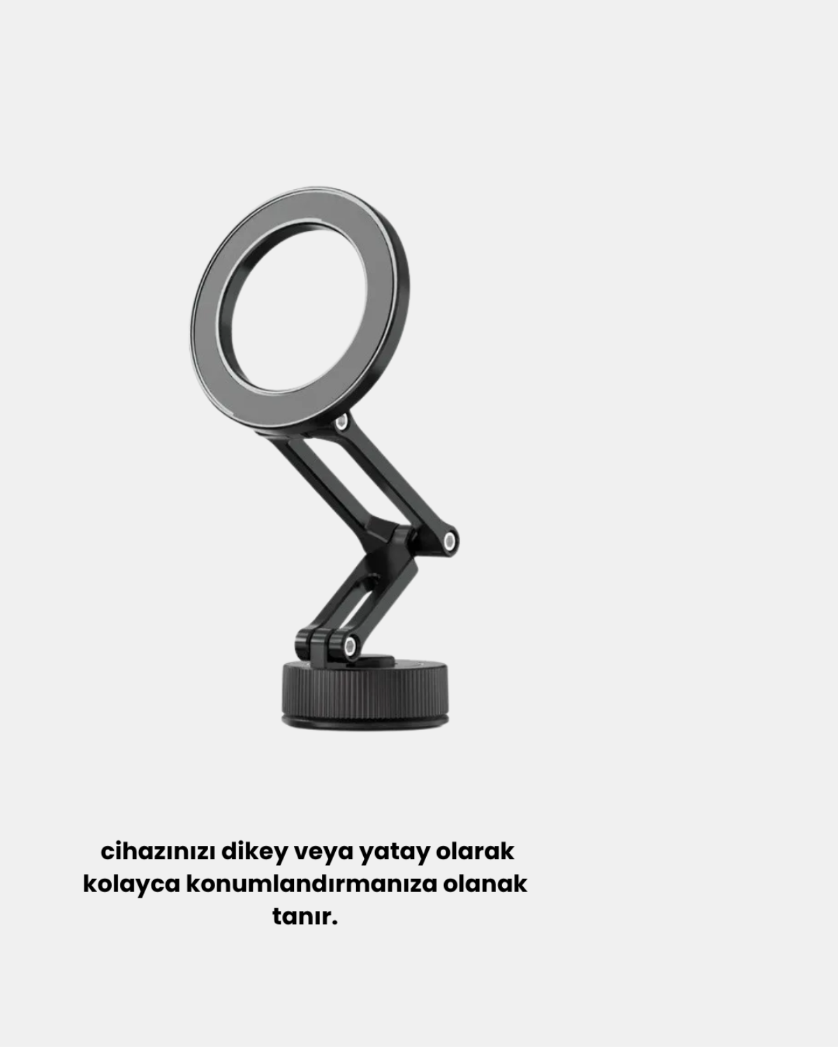Yolculuklarınızı daha güvenli ve konforlu hale getirmek için tasarlanan Katlanır Manyetik Araç İçi Telefon Tutucu, güçlü mıknatısları ve modern tasarımıyla dikkat çekiyor. MagSafe uyumlu manyetik yüzeyi sayesinde telefonunuzu saniyeler içinde sabitler, ani frenlerde veya sarsıntılarda bile güvenli tutuş sağlar.